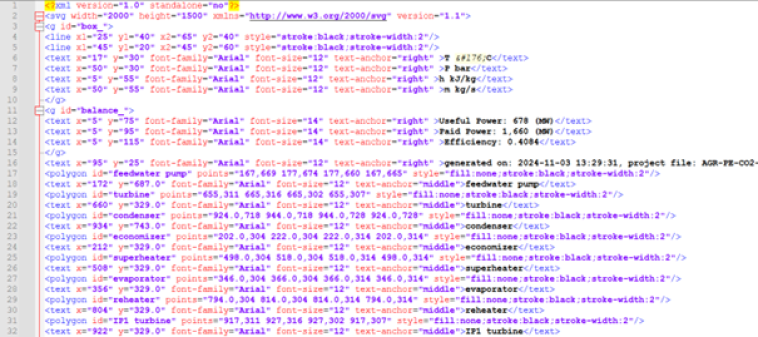 The generated file is located in the "svg" folder of the Thermoptim installation directory. By default, it is called "flowsheet.svg". If a file with this name exists, you are offered to save it under a different name.